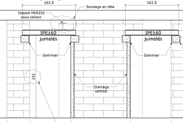 Objet Faisabilité et conception pour des travaux : De créations de baies dans un mur porteur brique (linteaux métalliques sur portes), D’élargissement de baies, Renfort pour suppression d’une cloison semi-porteuse, Point remarquable Élément semi-porteur (cloison d’origine) traitée comme porteur Donneur d’ordre : Propriétaire et architecteSite : Appartement 75019