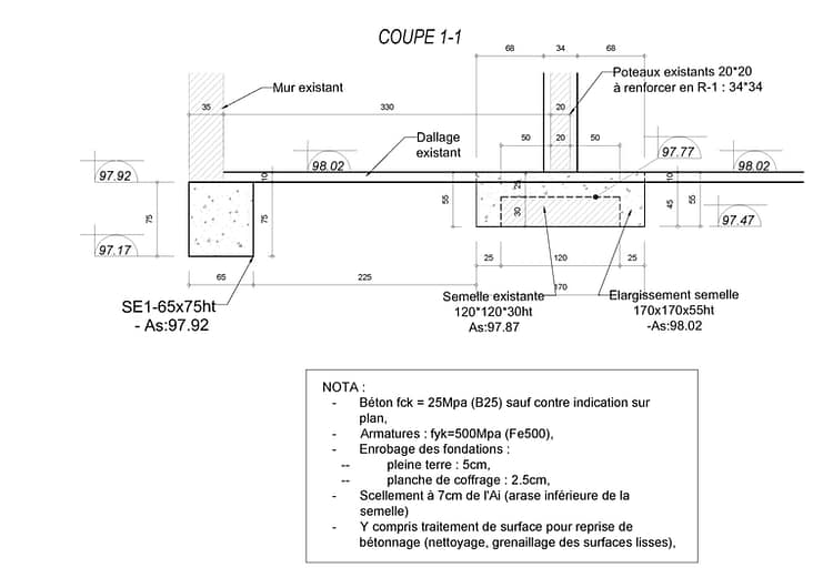 - Reprise des fondations en contre oeuvre,