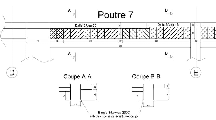 Renfort de poutre et plancher en plat carbone